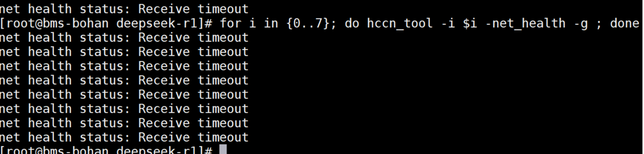 多机拉起DeepSeek 模型时,服务化拉起卡住。进行NPU 卡进行健康检查时,返回timeout 错误