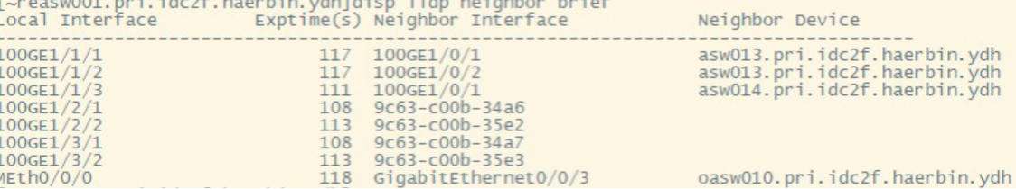 1、前往交换机执行 display lldp neighbor brief,如果有如下回显,证明交换机使能了 LLDP 功能。