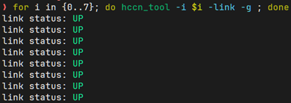 for i in {0..7}; do hccn_tool -i $i -link -g ; done