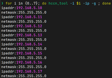 for i in {0..7}; do hccn_tool -i $i -ip -g ; done
