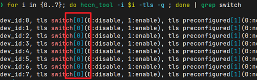 for i in {0..7}; do hccn_tool -i $i -tls -g ; done | grep switch
